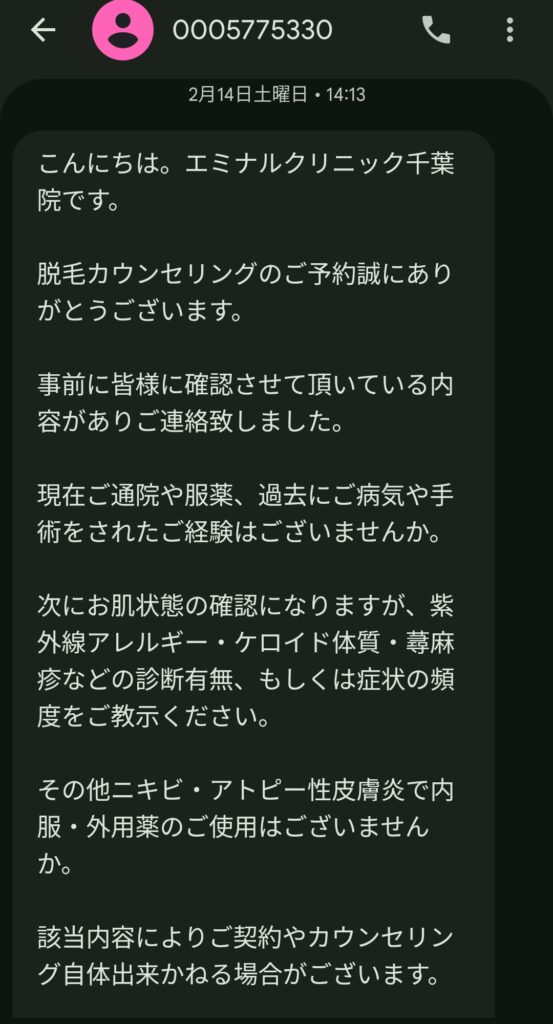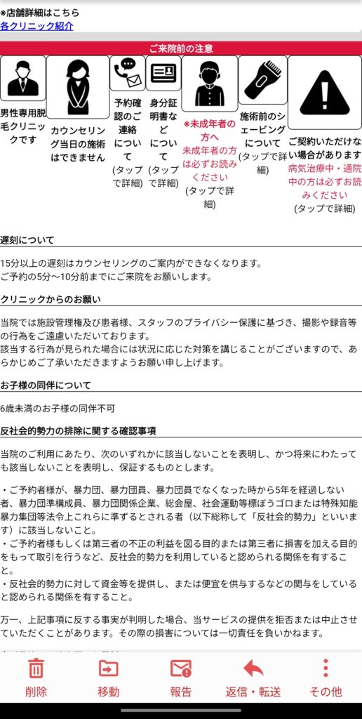 上の画像は、僕が実際に千葉院で無料カウンセリングを予約した際の「予約完了メール」と、持病や薬の確認が書かれた「事前確認メッセージ」のスクリーンショットです。ネット上の適当な口コミではなく、僕自身が実際に足を運んで嫌な思いをした、紛れもない一次情報をお伝えします。